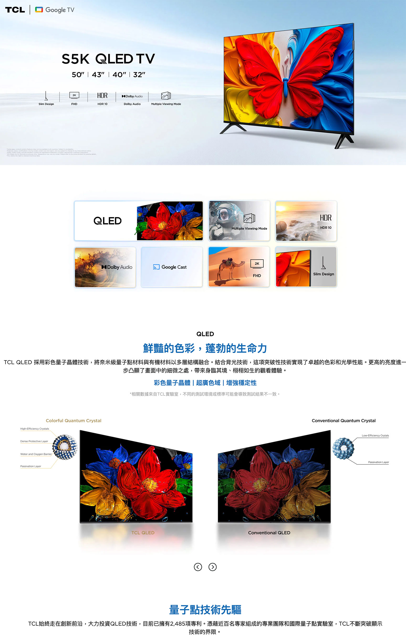 2026 輕旗艦嘅畫質代表。TCL S5K 採用 QLED 量子點技術,徹底打破咗入門機色彩淡茂茂嘅印象,飽和度同對比度直頭係專業級。FHD 高清畫質喺中細尺寸上面表現極之細膩。對於追求效率嘅專業人士,呢部機內置智能系統反應流暢,支援快速投屏,方便你隨時將電腦嘅 SCM 流程或報表同步到大銀幕。金屬簡約邊框設計,完美融入你嘅高品質工作間或臥室。澳門本地行貨,IONE 專業保養。